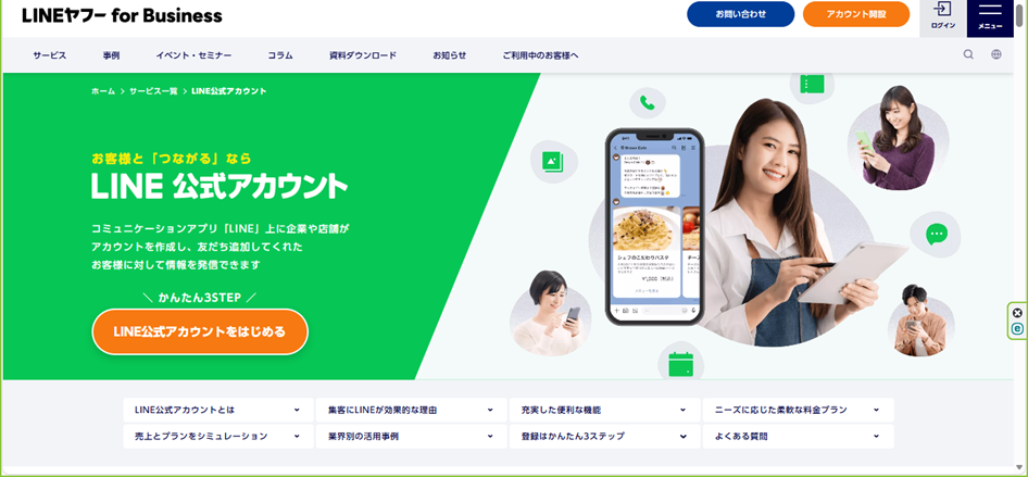 ⇒https://www.lycbiz.com/jp/service/line-official-account/