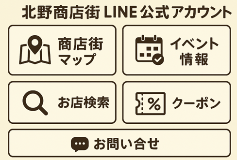 「北野商店街のLINEでイベント情報やクーポンが届きます。よかったら友だち追加お願いします!」