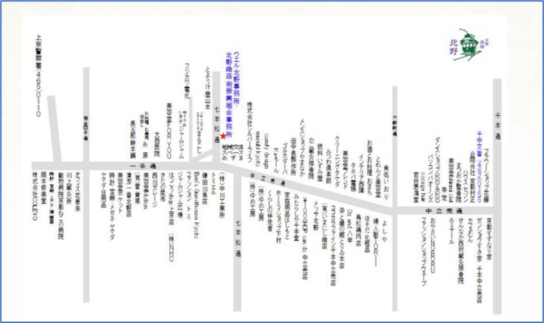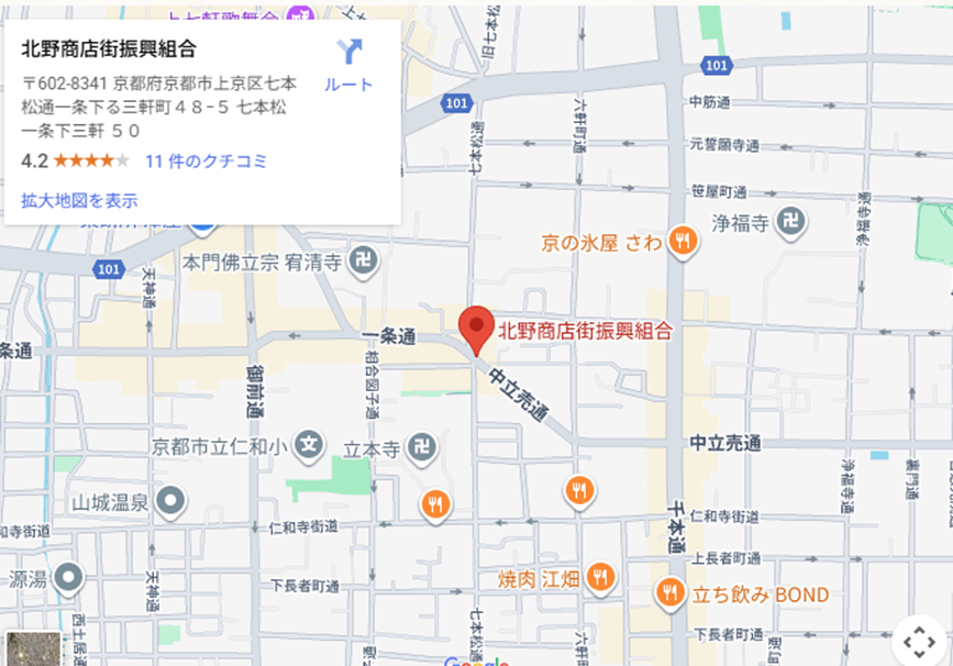 ・振興組合の所在地:京都市上京区七本松通一条下ル三軒町50 ウエル北野2F
