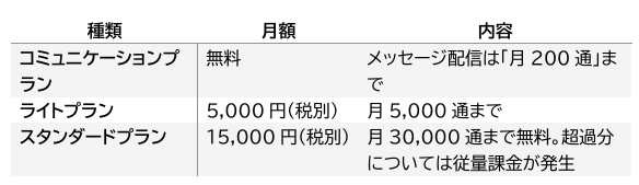 有償によるLINE公式アカウント運用プランには現在次のプランが一般的です。